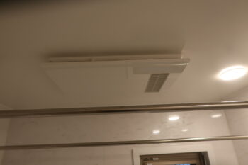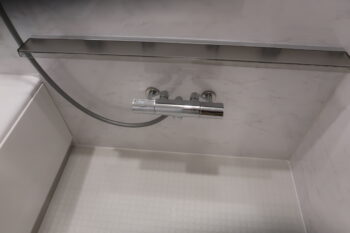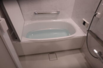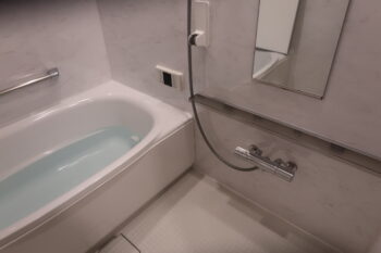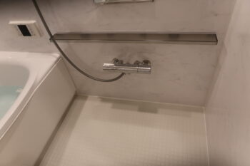浴槽は人造大理石でサーモバス、浴室暖房乾燥機、キレイサーモフロアー、