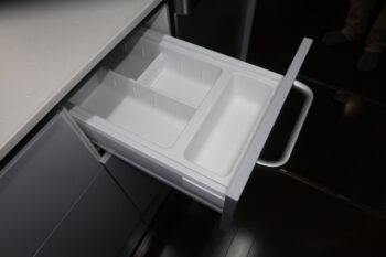 本体の左部分は空きスペースにしてゴミ箱収納ができるようにしました。