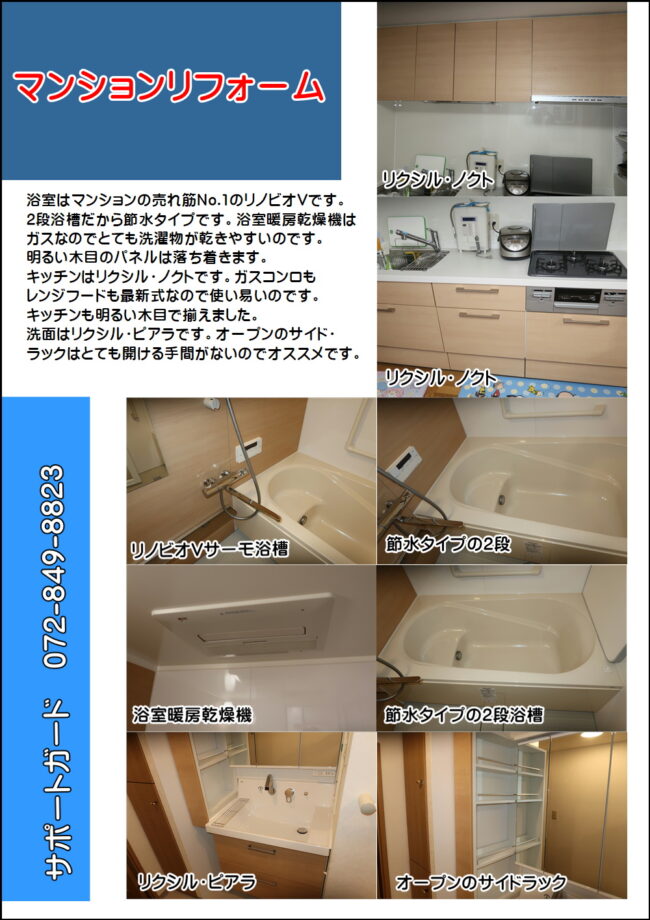 マンションリフォームはキッチン浴室洗面でした枚方 公開日:2026年4月29日 ブログ枚方オススメマンション水まわり マンションリフォームは枚方の水まわり物件でした。 キッチンはリクシル・ノクト、キッチンのスタンダードのタイプです。 浴室はリクシルのリノビオV、浴室の定番です。 洗面はリクシルのピアラ、洗面の売れ筋No1です。 タグ ブログ 水まわり オススメ マンション 枚方 関連記事 マンションリフォームのサイトはこちら全面リフォーム事例です枚方あの古かった玄関ドアが・・・枚方外壁塗装リフォームと屋根補修リフォームでした1階と2階のトイレリフォームはTOTOピュアレストでした枚方リシェルはセラミックトップを使ったキッチン凄いのです枚方 投稿ナビゲーション キッチンリフォームは最高峰【リシェル】でした。