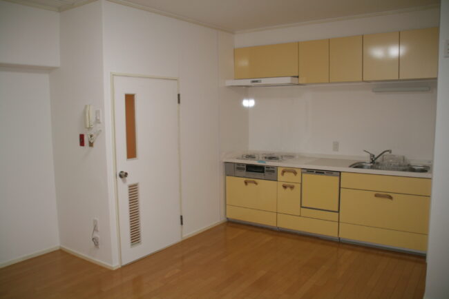 キッチンは色鮮やかなイエローで寝屋川マンションでした。