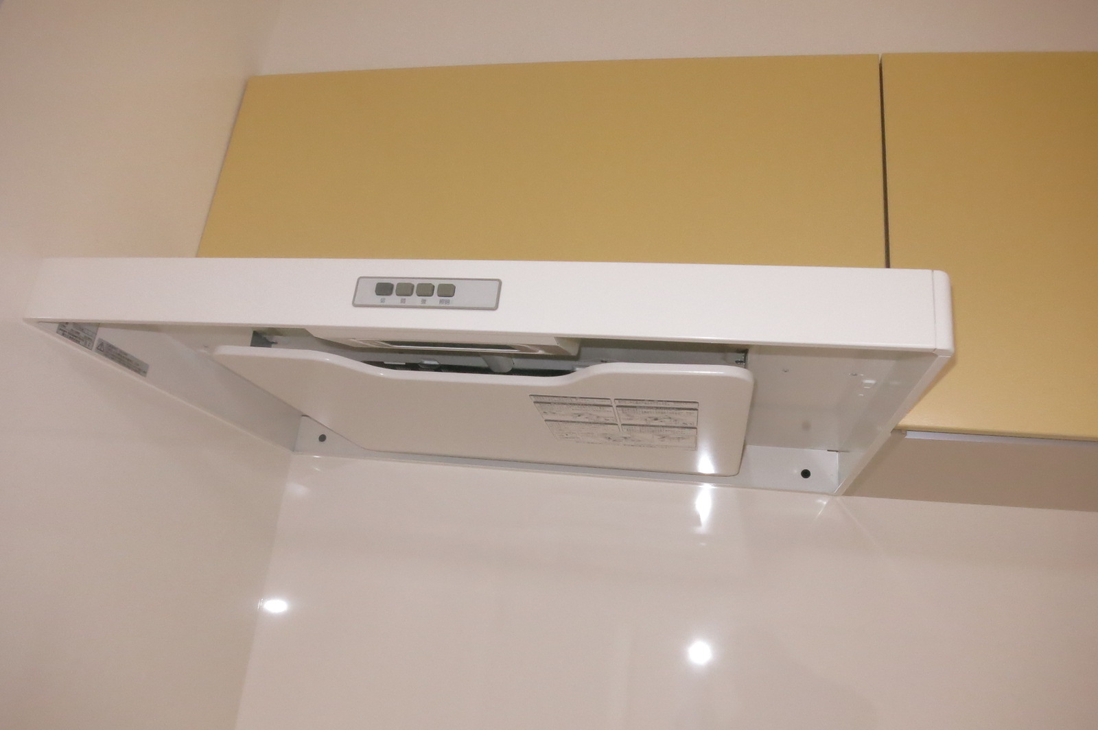 レンジフードも最新式のカンタンにお掃除ができるタイプでした。