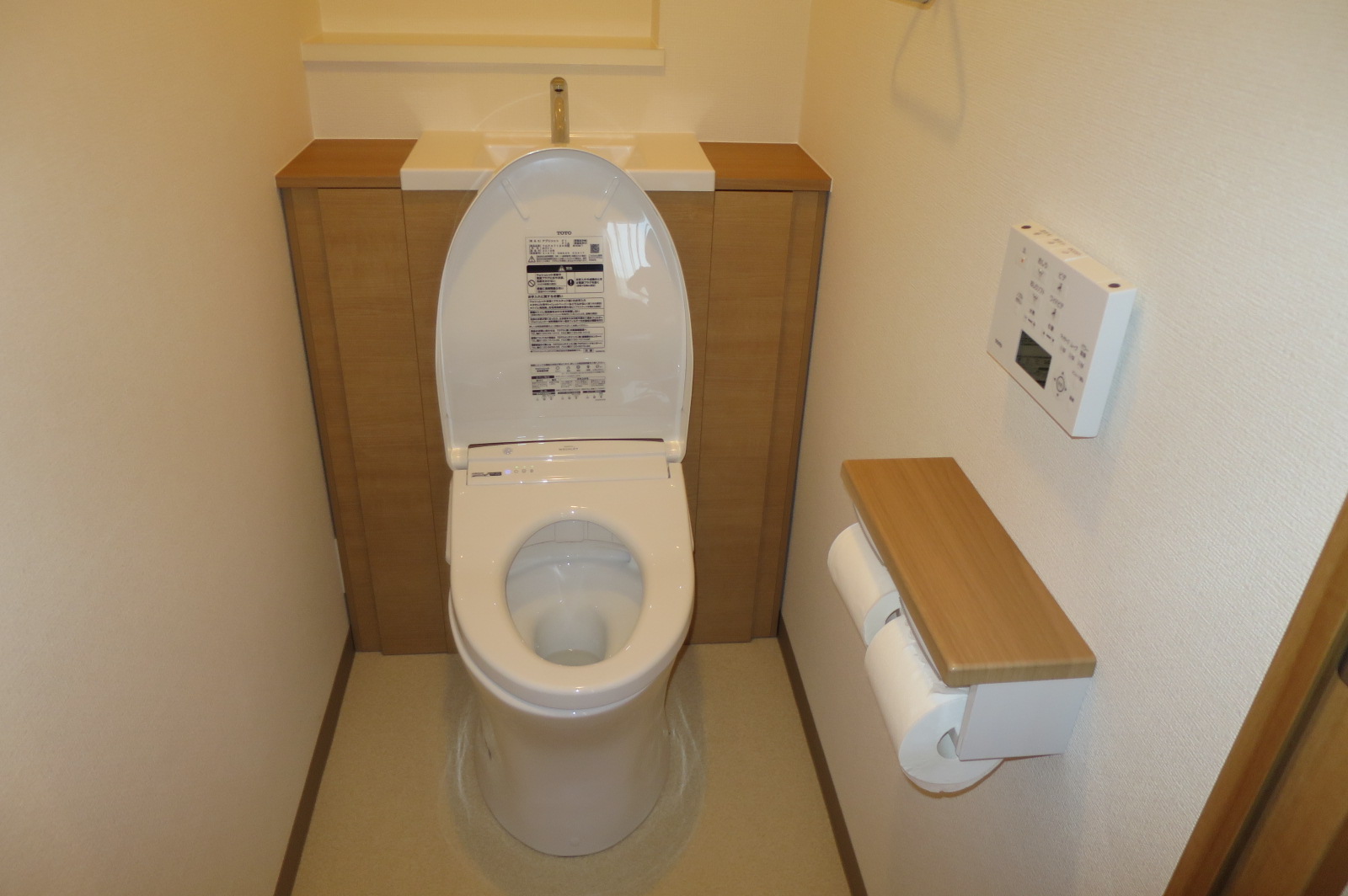 トイレリフォームは定番ピュアレストQRに埋め込み型手洗い器でした交野NEW