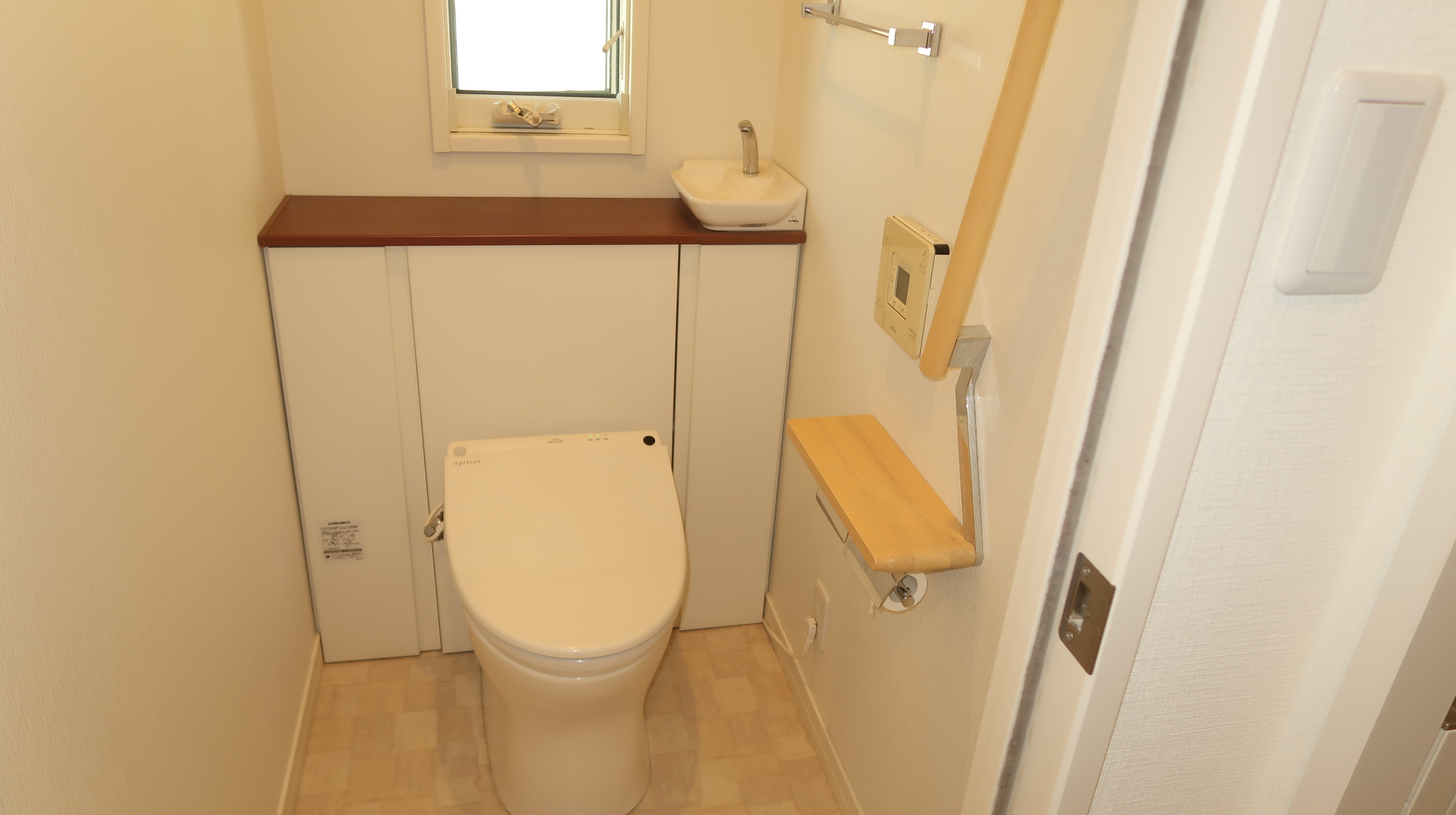 トイレスペース全部のリフォームで埋め込み収納もつけバリアフリーです京都八幡市オススメ