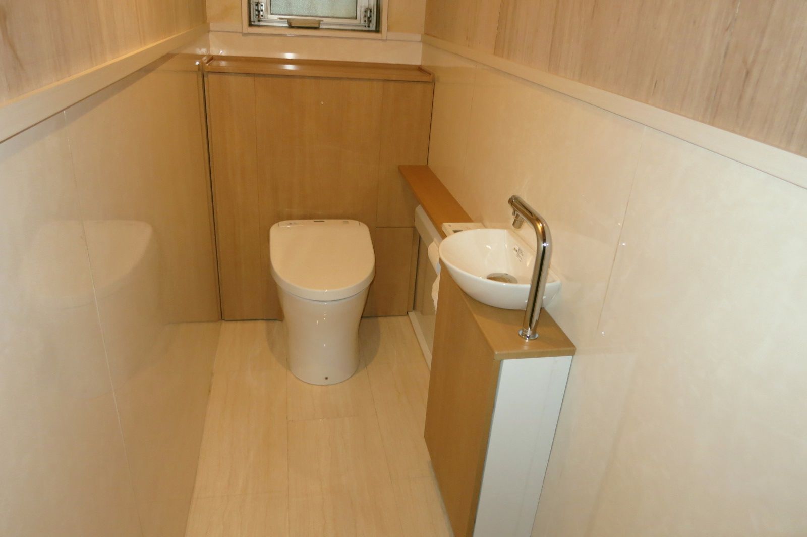 おしゃれな手洗い化粧ボックスもセットしたトイレでした寝屋川