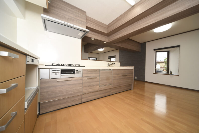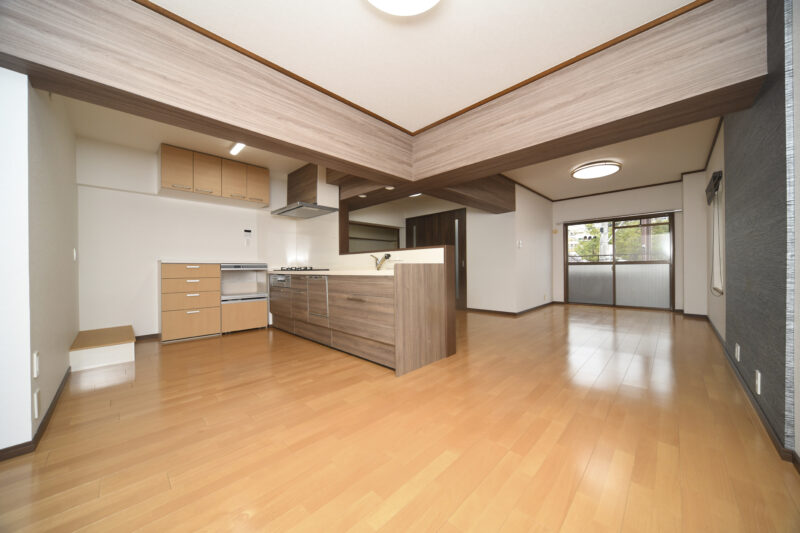 視覚的にキッチンのパネルとシンクロして圧迫感のないLDKになりました。